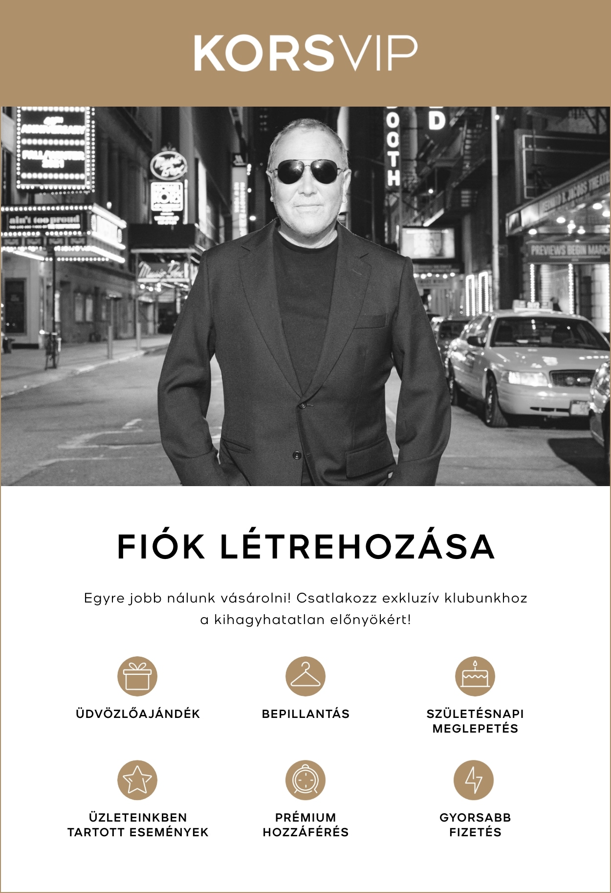 Vásárlás folytatásaAz alábbi „Feliratkozás” gombra kattintva kijelented, hogy elolvastad és elfogadod az Általános szerződési feltételeinket és az Adatvédelmi nyilatkozatunkat, valamint hozzájárulsz ahhoz, hogy a Michael Kors, kapcsolt vállalkozásai és szolgáltatói a fenti célokból kezeljék a személyes adataidat az Adatvédelmi nyilatkozatban leírtaknak megfelelően.